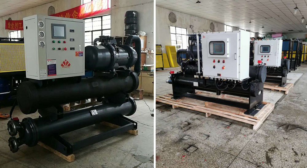 螺桿式冷水機(jī)按照散熱方式的不同可分為水冷螺桿式冷水機(jī)和風(fēng)冷螺桿式冷水機(jī)兩種