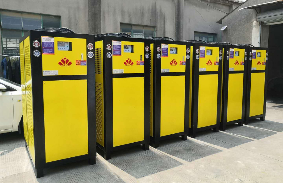 注塑機(jī)風(fēng)冷式冷水機(jī),冷水機(jī)是注塑機(jī)產(chǎn)品提高生產(chǎn)不可缺少的產(chǎn)品,注塑機(jī)用冷水機(jī)用于塑膠粒經(jīng)加熱溶化后注入模具中,凝結(jié)后,開(kāi)模頂出成型塑膠工件,在連續(xù)生產(chǎn)過(guò)程中有需用對(duì)模具進(jìn)行冷卻,以縮短塑膠凝結(jié)時(shí)間,提高工件尺寸精度,成型質(zhì)量、表面質(zhì)量.