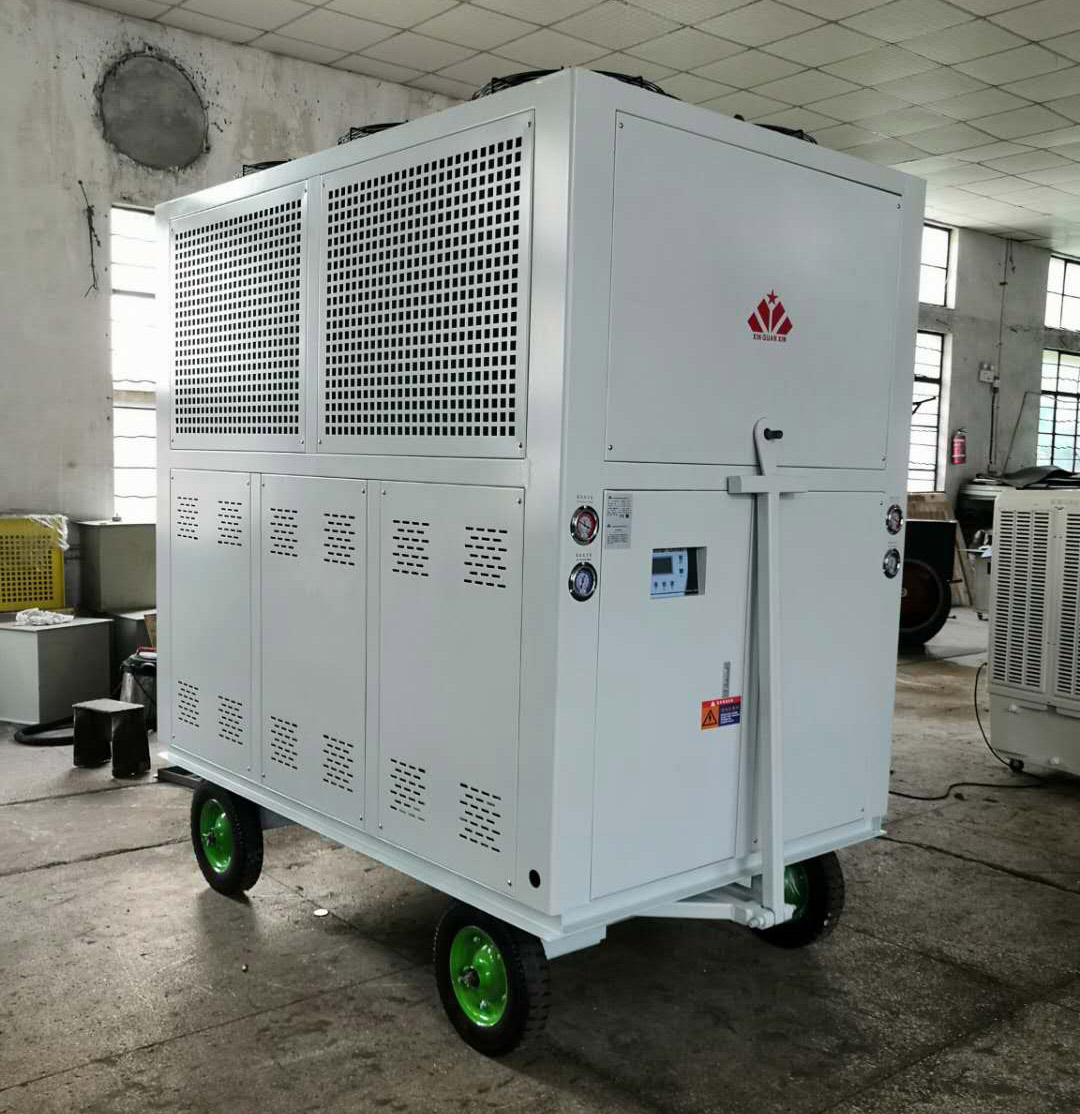 1、谷物冷卻機(jī) 谷物冷卻機(jī)是均溫降溫系統(tǒng)的關(guān)鍵配套設(shè)備,它由壓縮機(jī)、蒸發(fā)器、冷凝器、后加熱裝置、過濾器、離心風(fēng)機(jī)、加熱器、可編程控制系統(tǒng)、移動(dòng)箱體等組成。